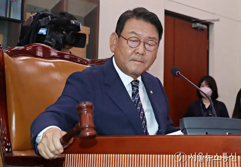 【서울 = 서울뉴스통신】 송경신 기자 = 1일 서울 여의도 국회에서 열린 제426회 국회(임시회) 문화체육관광위원회 제2차 전체회의에서 김교흥 위원장이 의사봉을 두드리고 있다. 2025.07.01. / 서울뉴스통신 신현성 기자 snakorea.rc@gmail.com