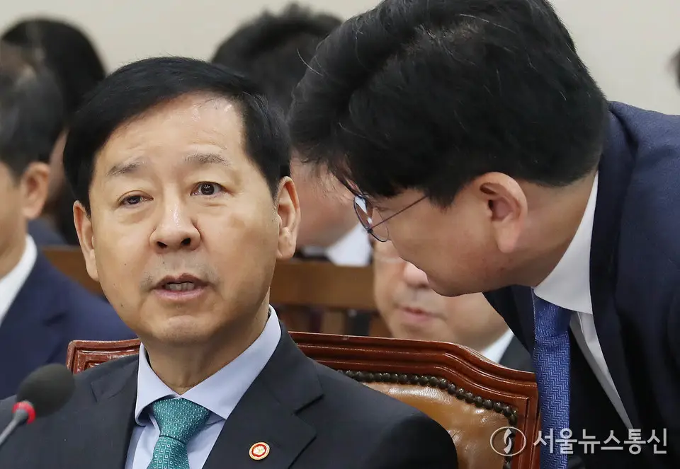 【서울 = 서울뉴스통신】 이민희 기자 = 구윤철 기획재정부 장관이 17일 서울 여의도 국회에서 열린 기획재정위원회 전체회의에서 관계자와 대화하고 있다. 2025.11.17. snakorea.rc@gmail.com