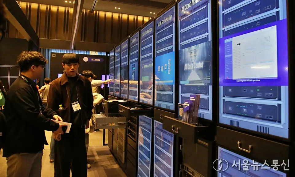 【서울 = 서울뉴스통신】 이민희 기자 = 3일 서울 강남구 코엑스에서 열린 'SK AI 서밋 2025'에 AI데이터센터가 전시되어 있다. 2025.11.03. snakorea.rc@gmail.com