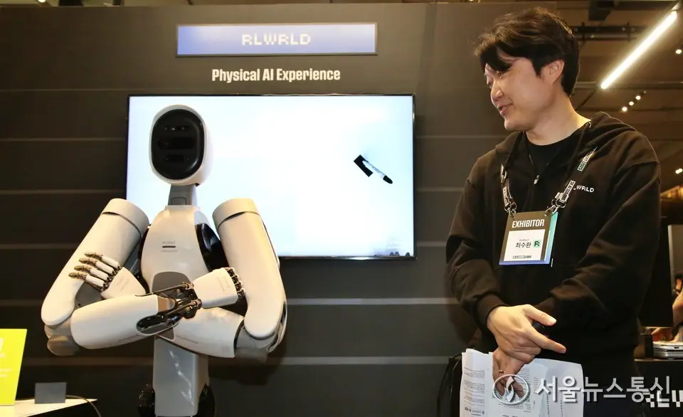 【서울 = 서울뉴스통신】 이민희 기자 = 3일 서울 강남구 코엑스에서 열린 'SK AI 서밋(SUMMIT) 2025'에서 로봇 파운데이션 모델이 탑재된 휴머노이드 로봇을 시연하고 있다. 2025.11.03. snakorea.rc@gmail.com