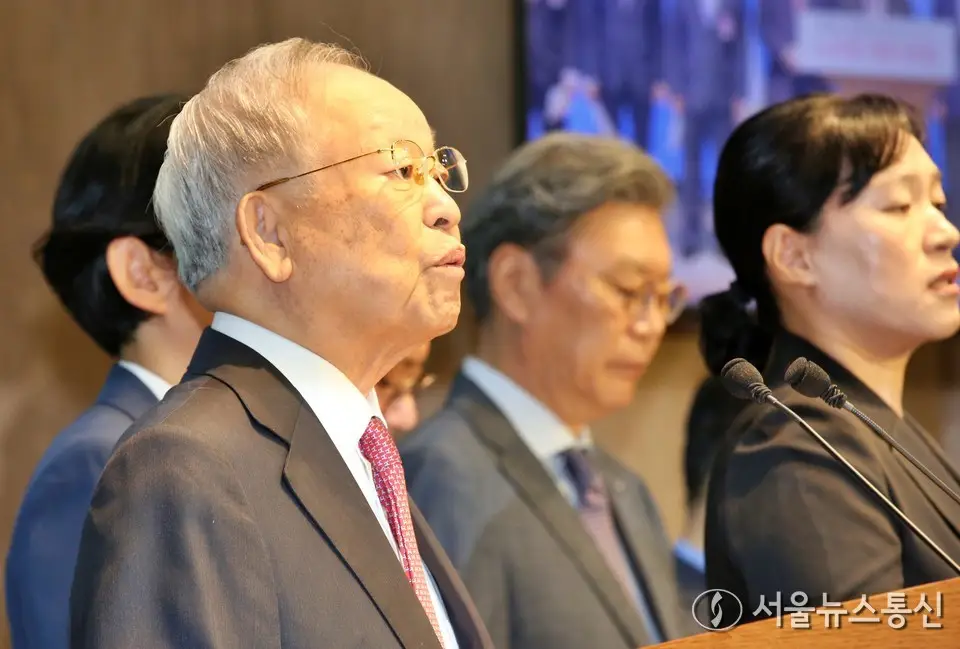 【서울 = 서울뉴스통신】 이민희 기자 = 손경식 한국경영자총협회 회장이 18일 오전 서울 여의도 국회 소통관에서 기자회견을 열고 노조법 2, 3조 개정 중단을 촉구 하고 있다. 2025.08.18. / 서울뉴스통신 신현성 기자 snakorea.rc@gmail.com