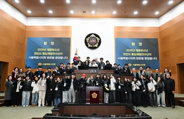 【서울 = 서울뉴스통신】 이민희 기자 = 서울시의회 보건복지위원회 강석주 시의원(국민의힘, 강서2)지난 11일, 글로벌 백두화랑단이 주관하는 ‘재중동포 청소년 통일교육 캠프’에 참여 중인 학생 40여 명을 초청해 서울시의회 방문 참관 프로그램을 진행했다. 이번 방문은 글로벌 백두화랑단(설규종 대표이사)이 추진 중인 평화·통일 체험형 교육 프로그램의 일환으로 진행됐으며, 재외동포 청소년들이 지방의회의 역할과 민주적 의사결정 과정을 직접 체험할 수 있도록 마련된 자리로,…
