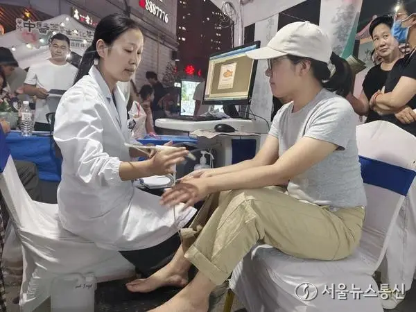 【서울 = 신화/서울뉴스통신】 권나영 기자 = 중국 동한(東漢)시대 의학자 화타(華佗)의 고향인 안후이(安徽)성 보저우(亳州)시에 있는 한 중의약 양생(養生)문화 전통시장이 건강 체험 핫플레이스로 떠올랐다. 한약 차 음료 맛보기, 침술 물리치료 체험, 중의사 진료, 중의약 문화 몰입형 체험 등이 인기다. 야시장에 마련된 중의 체질 분석기 앞에는 사람들로 장사진을 이룬다. 덩쥔메이(鄧君梅) 보저우시중의의원 의사는 “이 기기는 진맥 시뮬레이션을 통해 손목,…