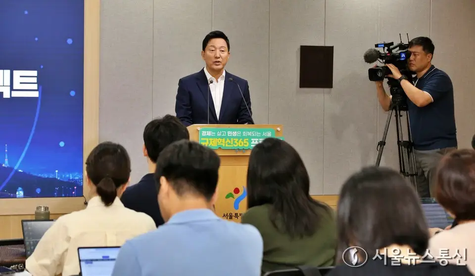 【서울 = 서울뉴스통신】 이민희 기자 = 오세훈 서울시장이 20일 오전 서울 중구 시청 브리핑실에서 규제혁신365 프로젝트 기자간담회를 하고 있다. 2025.08.20. / 서울뉴스통신 신현성 기자 snakorea.rc@gmail.com