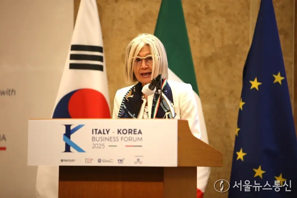【서울 = 서울뉴스통신】 이민희 기자 =한국과 이탈리아 양국간 비즈니스포럼이 5일 오전 서울 롯데호텔에서 양국 관계자 등 300여명이 참석한 가운데 이탈리아의 에밀리아 가토대사가 개회사를 혼용어를 구사하며 개회사를 하고 있다. 2025.09.05, snakorea.rc@gmail.com , *재판매 및 DB 금지