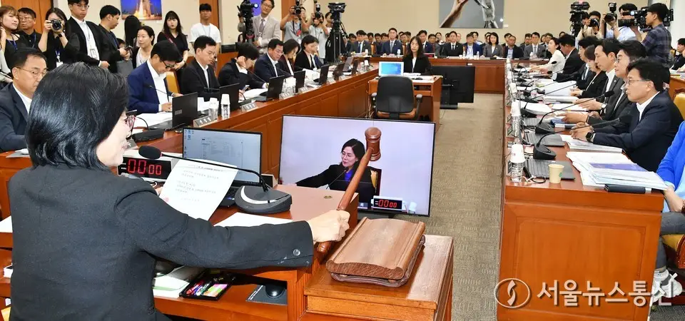 【서울 = 서울뉴스통신】 이민희 기자 = 최민희 국회 과방위원장이 20일 서울 여의도 국회에서 열린 과학기술정보방송통신위원회 전체회의에서 안건을 상정하고 있다. 2025.08.20. / 서울뉴스통신 신현성 기자 snakorea.rc@gmail.com