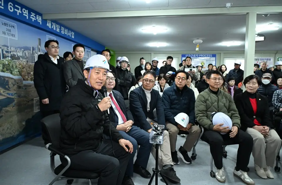 오세훈 서울시장은 19일 노량진 재촉지구를 방문해 현재 공사가 진행 중인 6구역의 현장을 점검하고 주민들과 간담회를 가졌다. 그는 “10여년간 답보 상태였던 노량진 사업이 6·8구역 착공으로 움직이기 시작한 만큼, 나머지 구역도 하루라도 빨리 착공할 수 있도록 모든 행정적 지원을 아끼지 않겠다”고 강조했다.