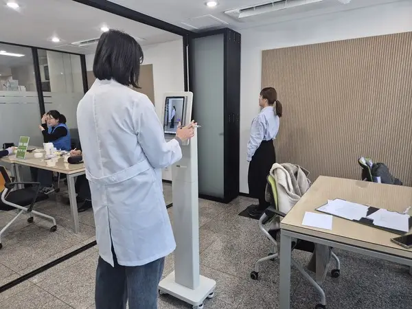 1차 선별검사는 ‘넥체크’ 측면 촬영을 통해 경추 기울기각을 측정하며 선별검사 결과 경추각도 7° 이상 등 이상 소견이 확인된 직원은 이동 검진 차량을 활용한 X-ray 촬영을 통해 경추 정렬 상태를 정밀 측정하였다.