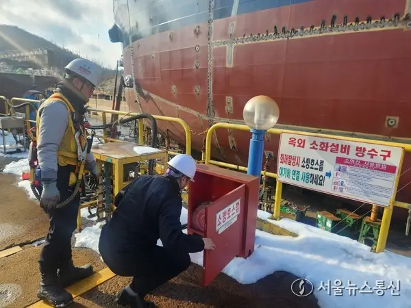 【광주·전남 = 서울뉴스통신】 김재희 기자 = 전남 해남소방서(서장 박춘천)는 지난 26일 겨울철 대형화재를 선제적으로 예방하기 위해 관내 핵심 수출 사업장인 대한조선을 대상으로 화재안전조사를 실시했다고 밝혔다.