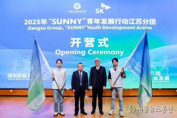 【서울 = 신화/서울뉴스통신】 권나영 기자 = 중국 쑹칭링(宋慶齡)기금회와 한국 SK그룹이 공동 주최한 2025년 SUNNY 청년발전행동 장쑤(江蘇)캠프 개영식이 25일 장쑤성 난징(南京)시에서 열렸다. 이번 행사에는 중국과 한국의 27개 대학에서 온 50명의 청년이 참가했다.
