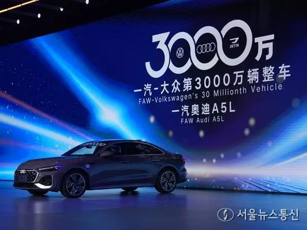【서울 = 신화/서울뉴스통신】 권나영 기자 = 최근 지린(吉林)성 창춘(長春)시에 위치한 이치다중(一汽大衆∙FAW-폭스바겐)의 창춘 생산기지에서 아우디 A5L이 출하됐다. 이는 이치다중의 3천만 번째 완성차로 이치다중은 중국 최초로 3천만 대를 생산한 승용차 기업이 됐다.