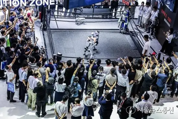 즈청(智澄)AI 전시구역에선 키 1.8m, 체중 75㎏의 TR5 고성능 범용 휴머노이드 로봇이 눈길을 사로잡았다. 전시구역 직원 펑샤오(馮笑)는 “바이오닉 아키텍처를 적용해 주요 관절을 자유롭게 회전할 수 있고, 스마트 중추를 탑재해 밀리초 단위의 반응을 구현해 냈다”고 설명했다. 무거운 물건을 나르는 육체 노동부터 달걀을 잡는 섬세한 작업까지 가능한 이유다.