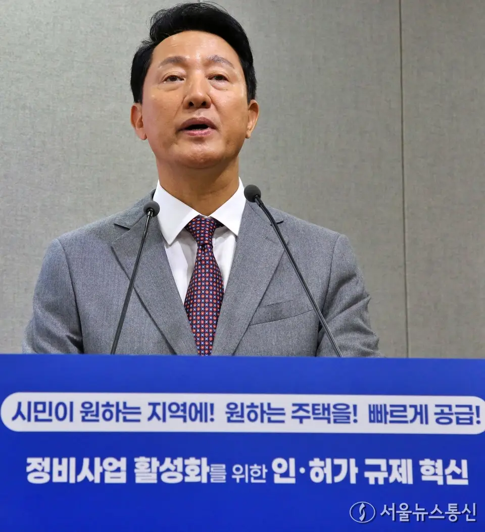【서울 = 서울뉴스통신】 이민희 기자 = 오세훈 서울시장이 29일 서울 중구 서울시청 브리핑룸에서 정비 사업 인·허가 규제 전면 혁신을 통한 민간 중심 정비 사업 확대를 주요 내용으로 하는 신속통합기획 2.0 추진 계획을 발표하고 있다. 2025.09.29. / 서울뉴스통신 신현성 기자 snakorea.rc@gmail.com