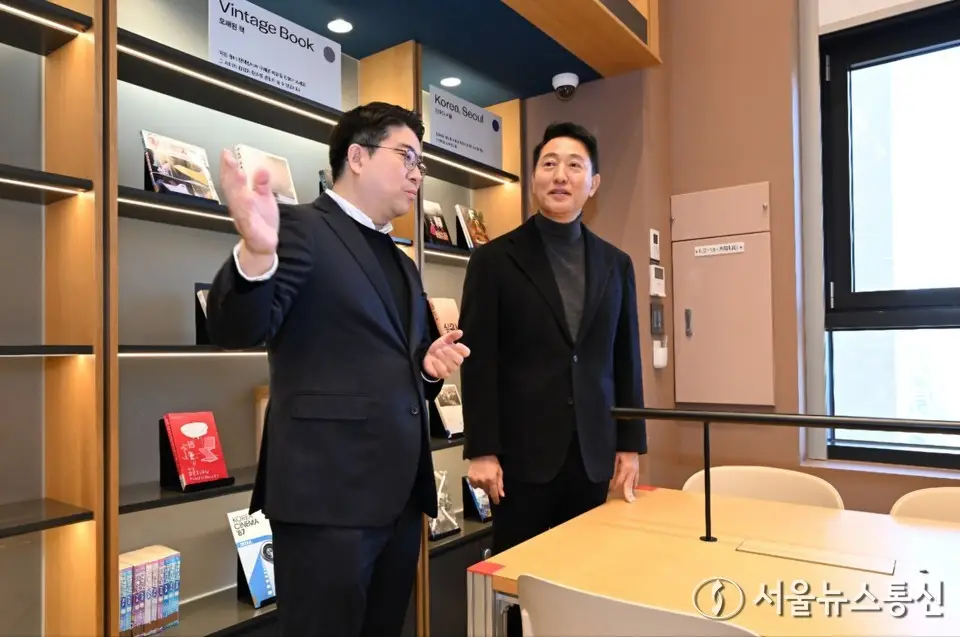 【서울 = 서울뉴스통신】 이민희 기자 = 오세훈 서울시장이 8일 서울 마포구 기업형 민간임대주택인 맹그로브 신촌을 찾아 현장점검을 하고 있다. (서울시 제공) 2026.01.08. nimini73@daum.net