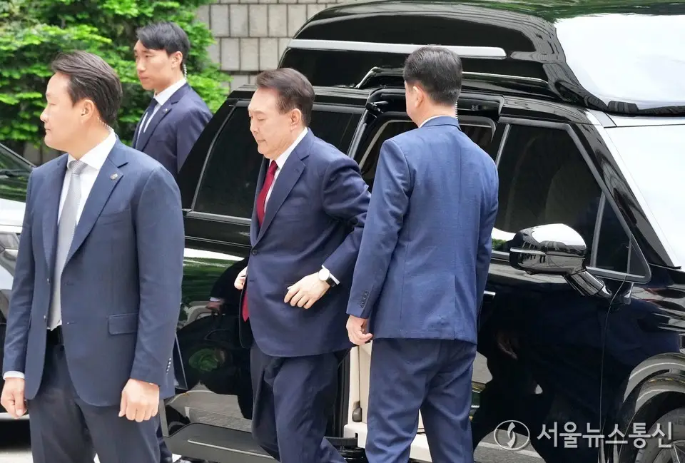 【서울 = 서울뉴스통신】 송경신 기자 = 윤석열 전 대통령이 19일 서울 서초구 서울중앙지방법원에서 열린 내란우두머리 및 직권남용·권리행사 방해 혐의 사건 4차 공판에 출석하고 있다. 2025.05.19. / 서울뉴스통신 신현성 기자 snakorea.rc@gmail.com