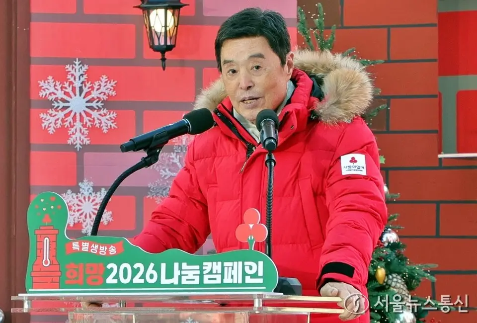 【서울 = 서울뉴스통신】 이민희 기자 = 김병준 사랑의열매 회장이 1일 오후 서울 종로구 광화문광장에서 열린 사랑의 열매 '희망2026나눔캠페인' 출범식 및 사랑의온도탑 점등식에서 인사말을 하고 있다. 2025.12.01. snakorea.rc@gmail.com