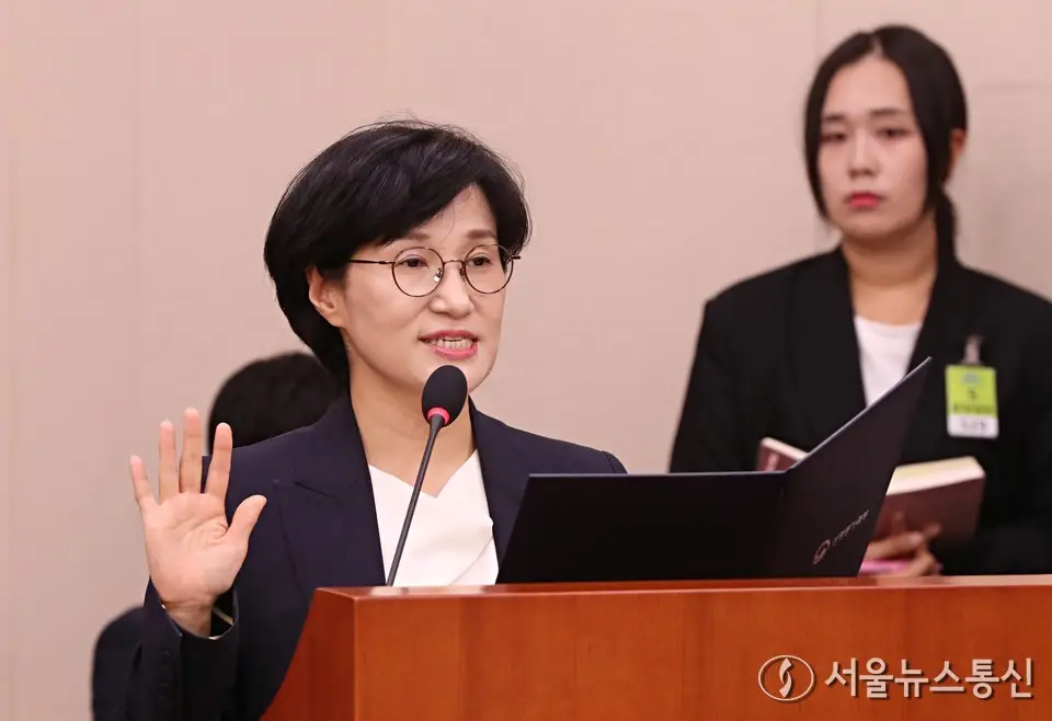 » 증인 선서하는 원민경 장관