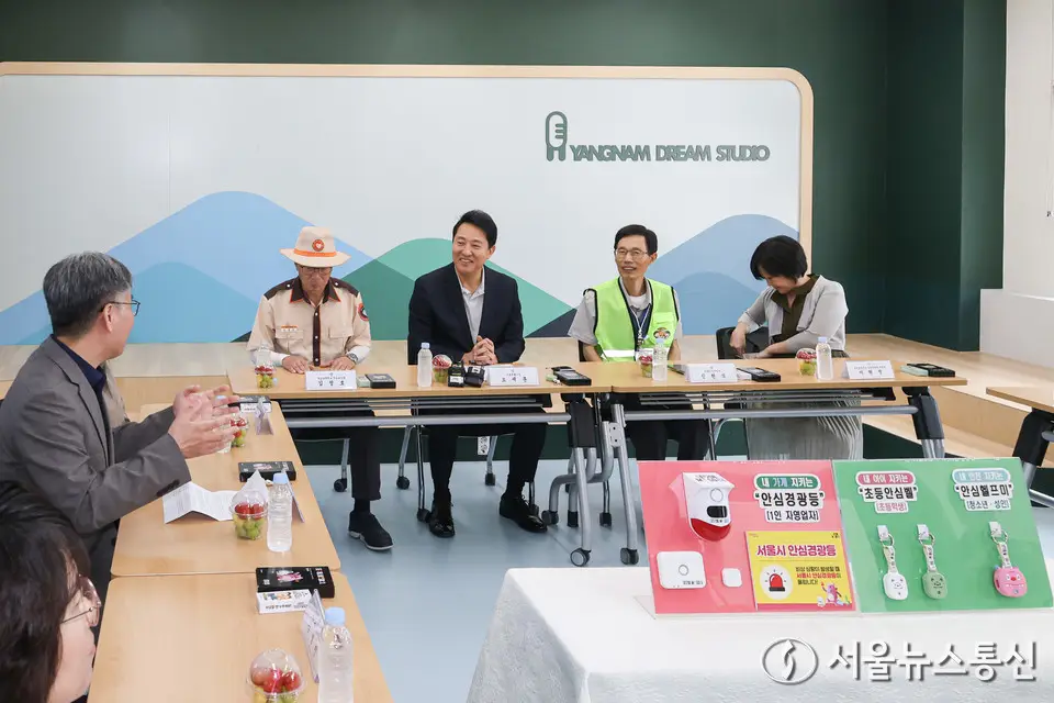 【서울 = 서울뉴스통신】 이민희 기자 = 오세훈 서울시장이 12일 서울 광진구 양남초등학교를 방문해 학부모와 학교 관계자, 경찰 등과 함께 학생 안전 대책 간담회를 하고 있다. (서울시 제공) 2025.09.12. / snakorea.rc@gmail.com